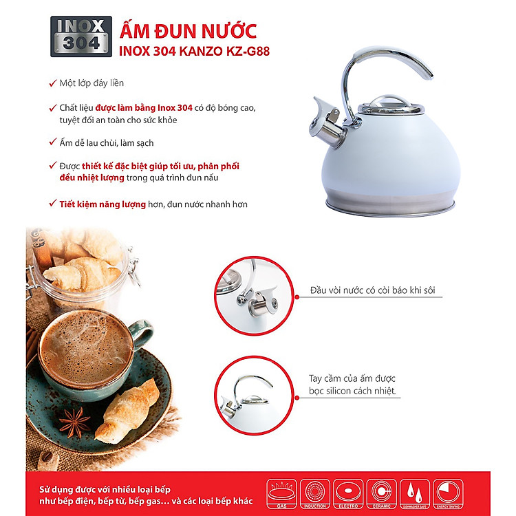 ẤM ĐUN NƯỚC KANZO KZ-G88 DÙNG BẾP TỪ- Ấm đun nước KANZO KZ-G88 còi báo Luxury 3L:+ Ấm đun nước Luxury KZ-G88 phù hợp với nhu cầu của mọi gia đình, bình có dung tích 3 lít đảm bảo nhu cầu nước để tắm,…