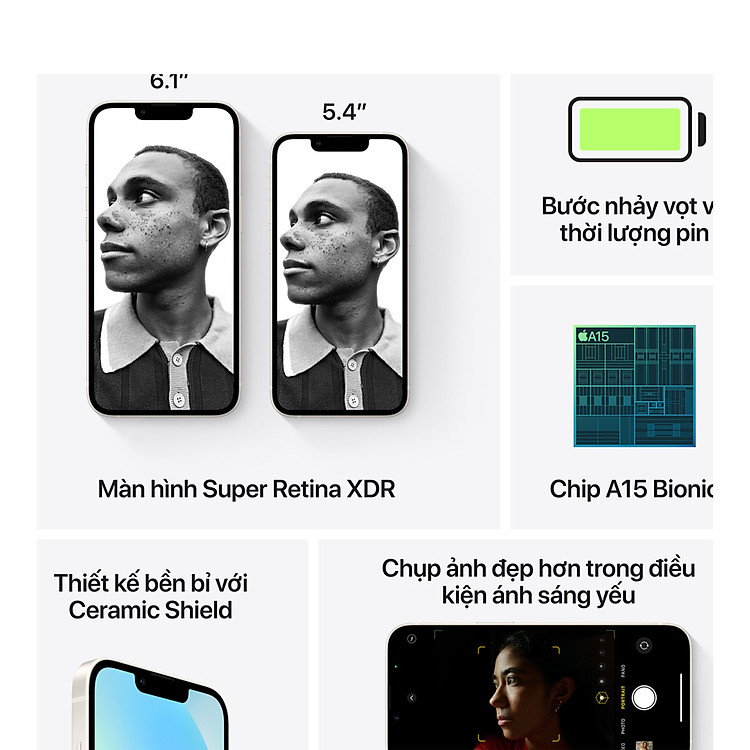 iPhone 13. Hệ thống camera kép tiên tiến nhất từng có trên iPhone. Chip A15 Bionic thần tốc. Bước nhảy vọt về thời lượng pin. Thiết kế bền bỉ. Mạng 5G siêu nhanh.1 Cùng với màn hình Super Retina XDR s…