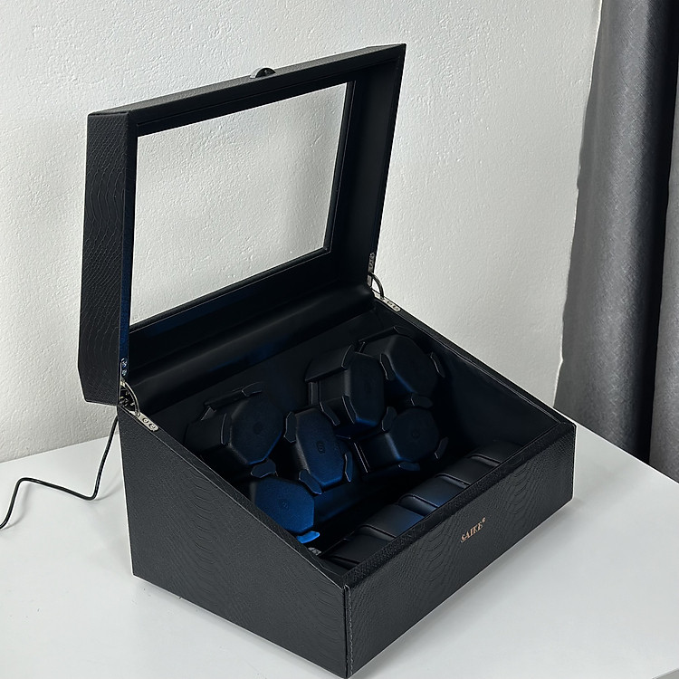 Thông tin sản phẩm:Hộp Đồng Hồ Cơ 6 Xoay + 6 Tĩnh SAIKE Vỏ Da Sần Dày Có Đèn Led- Thương hiệu: SAIKE- Chất liệu: thân phôi là gỗ MDF, bảng bên trong là ABS + MDF + gối mút xốp có đàn hồi, vỏ ngoài …