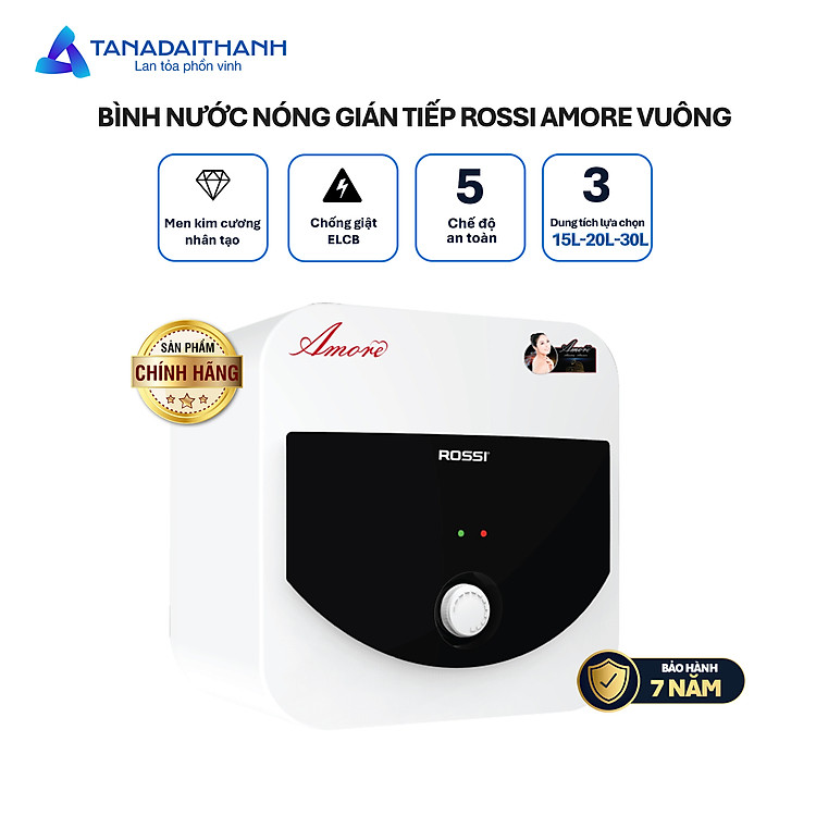 Bình nóng lạnh gián tiếp Rossi Amore Vuông (15/20/30 Lít) – Chính hãng, Bảo Hành 7 năm