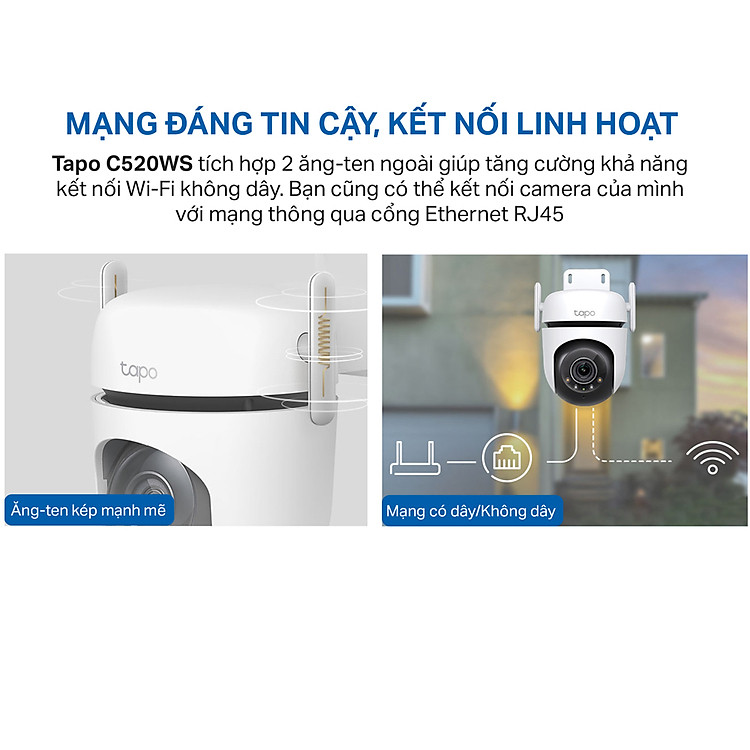 Camera WiFi TP-Link Tapo C510W / C520WS An Ninh Quay/Quét 360 Độ, Chống Nước- Thương hiệu: TP-Link- Xuất xứ: China- Độ phân giải: + Tapo C510W độ phân giải 3MP 2K sắc nét tới từng chi tiết …