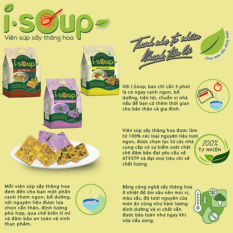 Canh Khoai Mỡ Chay I-Soup 55g (túi 05 viên)- Viên Súp Chay Sấy Thăng Hoa