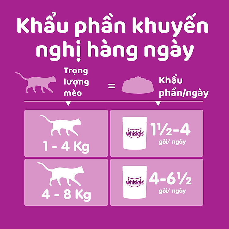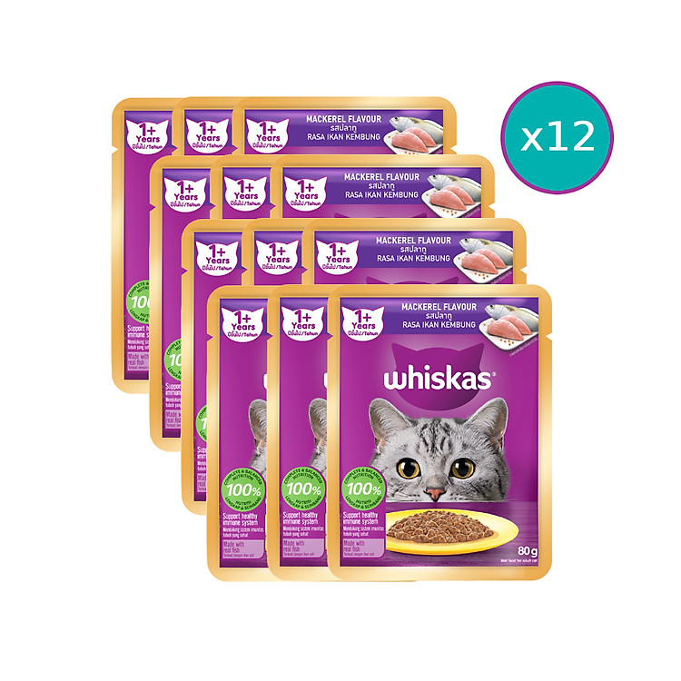 Gói Thức Ăn Ướt Whiskas Cho Mèo Trưởng Thành Từ 1 Tuổi Mèo từ 1-6 tuổi cần có nhiều thời gian vui chơi và chế độ ăn uống cân bằng để luôn giữ được vóc dáng cân đối, khỏe mạnh. Mèo là loài ăn thịt tron…