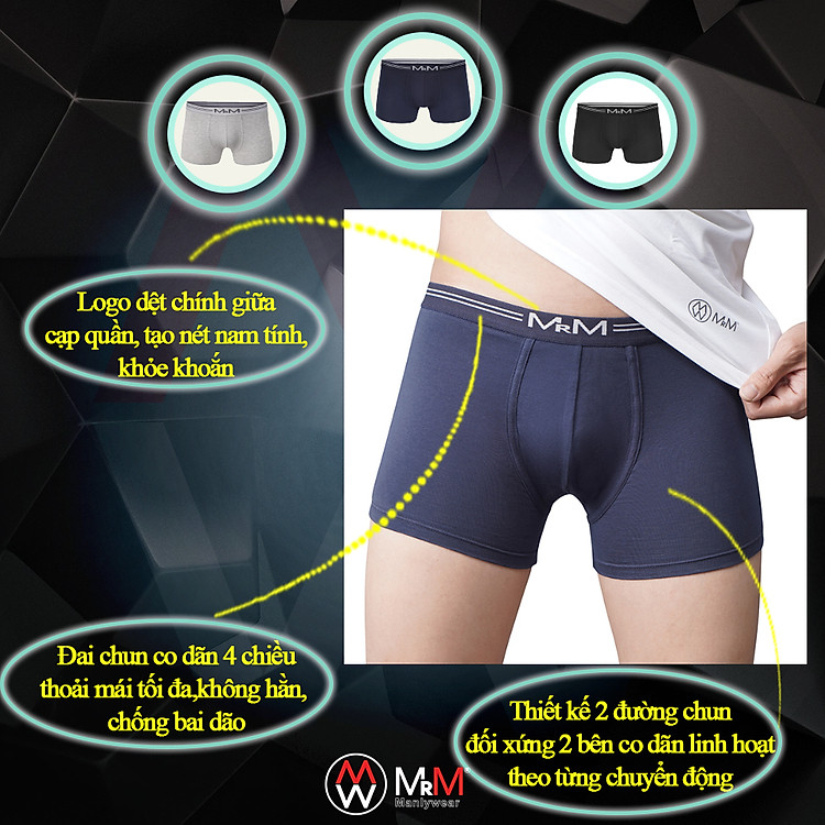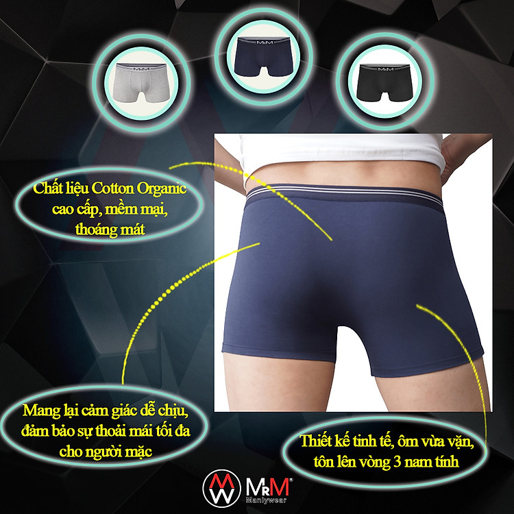 Combo 3 quần lót nam Boxer sợi Organic mềm mịn thoáng mát co giãn 4 chiều MRM Manlywear ( TẶNG Đôi Tất Nam Cao Cấp Giao Ngẫu Nhiên)