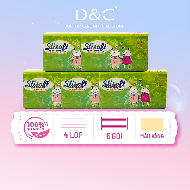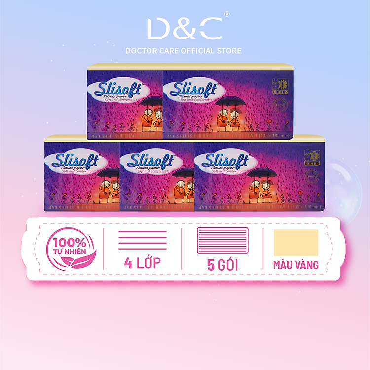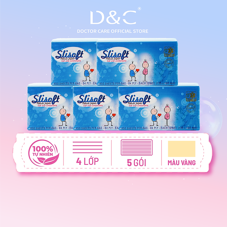Combo 5 Giấy ăn Slisoft Vàng x 450 tờ Đa Năng, Khăn Giấy Rút Không Chất Tẩy Trắng An Toàn Cho Cả Gia Đình