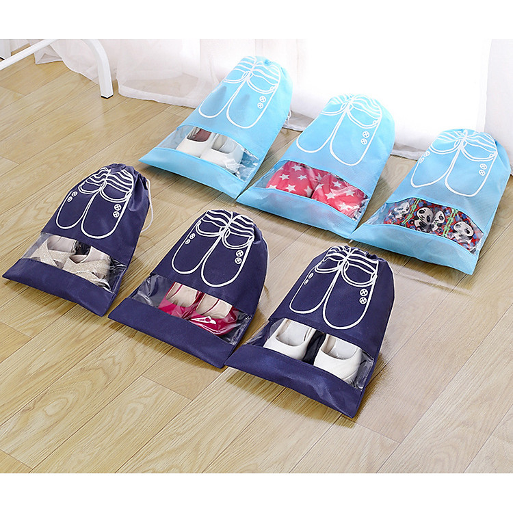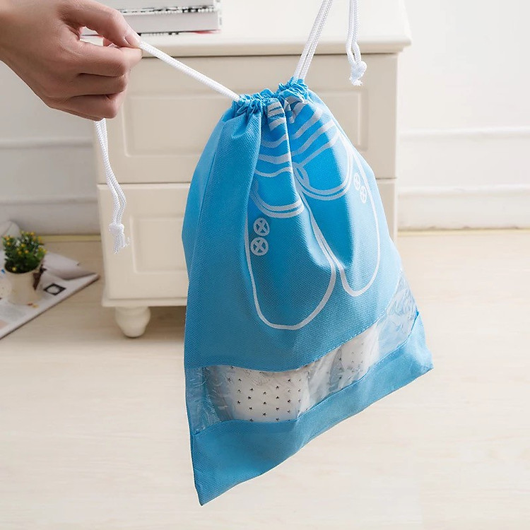 COMBO 5 TÚI ĐỰNG GIÀY DÉP CÓ DÂY RÚT, BẢO QUẢN GIÀY DÉP, CHỐNG BỤI, CHẤT LIỆU VẢI KHÔNG DỆT, CÓ LỚP NHỰA TRONG SUỐT TIỆN LỢIBạn lăn tăn vì những đôi giày dép trên kệ giày bị bụi bẩn? Hoặc phải đựng g…