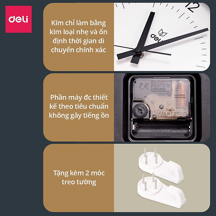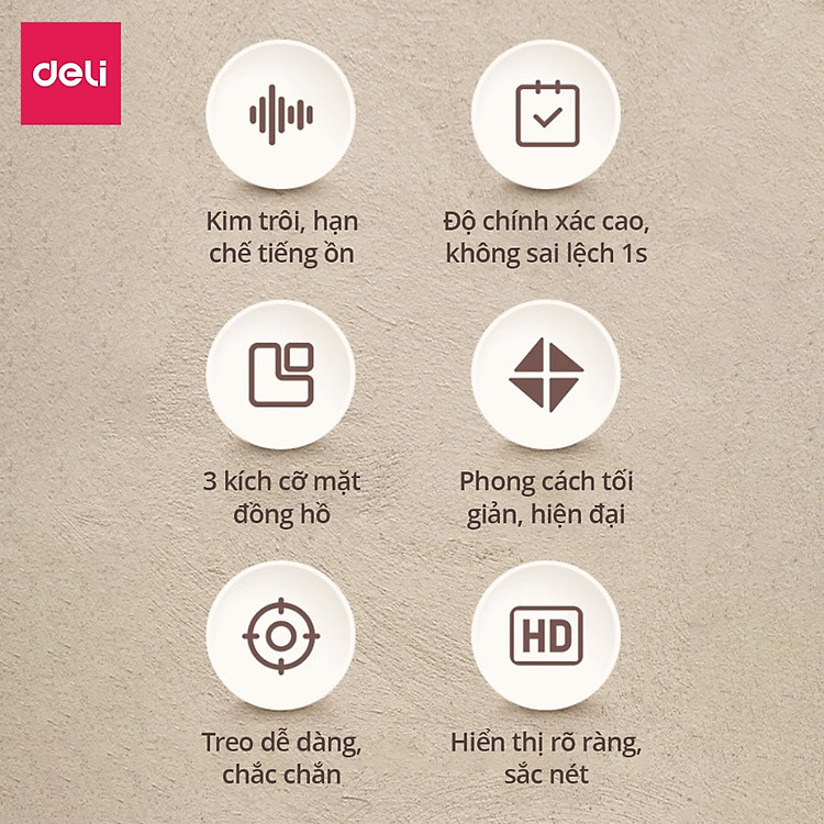 Đồng hồ treo tường kim trôi không ồn minimalist phong cách tối giản trang trí phòng khách Bảo hành 12 tháng Deli