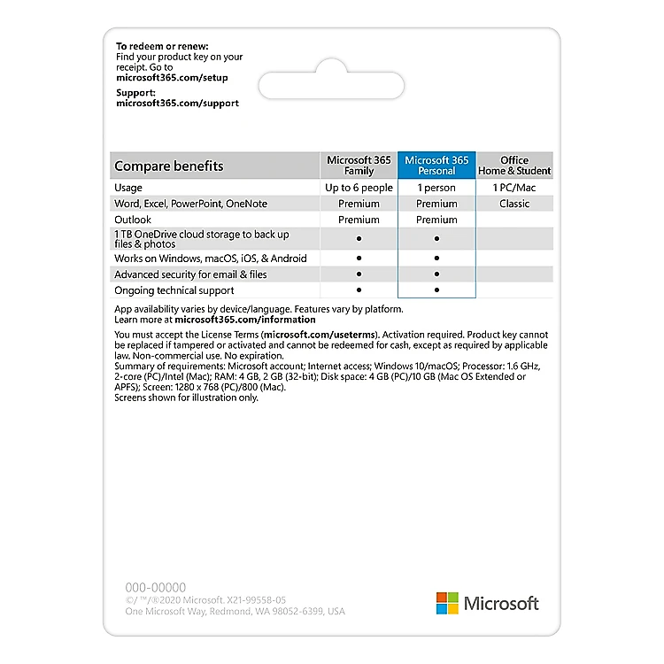 | Đặc điểm nổi bật | Nhận nhanh qua Email trong 1 phút. Sử dụng mới hoặc gia hạn đều được • Trọn bộ phiên bản cao cấp của Word, Excel, PowerPoint, OneNote, Outlook và các ứng dụng khác. Ứng dụng liên tục được cập nhật với các tính năng và phiên bản mới nhất• 1 TB lưu trữ đám mây OneDrive.• Outlook hỗ trợ sắp xếp email, lịch biểu, danh bạ, không có quảng cáo• Trình chỉnh sửa video Clipchamp với các bộ lọc và hiệu ứng cao cấp• Nâng cấp Microsoft Teams – Cuộc gọi nhóm lên đến 30 giờ cho 300 người tham gia, tạo phụ đề tiếng Anh tự động cho cuộc họp• Bảo vệ thiết bị và tài liệu quan trọng với khả năng tự động phát hiện virus và bảo mật hai lớp nâng cao Hỗ trợ hệ điều hành: • Windows• MacOS: Sonoma phiên bản 14, Sequoia phiên bản 15, Tahoe phiên bản 26 (chỉ hệ điều hành macOS không hỗ trợ tiếng Việt)• Android• iOS, iPadOS phiên bản 18.0 trở lên Lưu ý: Đối với sản phẩm key điện tử CHƯA KÍCH HOẠT sẽ KHÔNG có thời hạn sử dụng. Bạn có thể bảo quản key để sử dụng trong tương lai. |