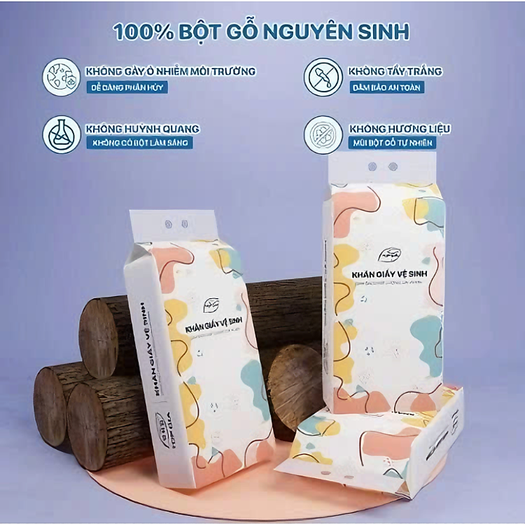 – Nguyên liệu: 100% bột gỗ nguyên chất- Sản phẩm 4K: Không chất tẩy trắng (hàm lượng dưới mức cho phép), không chất bảo quản, không hương liệu (mùi tự nhiên), không ô nhiễm môi trường- Giấy có độ da…
