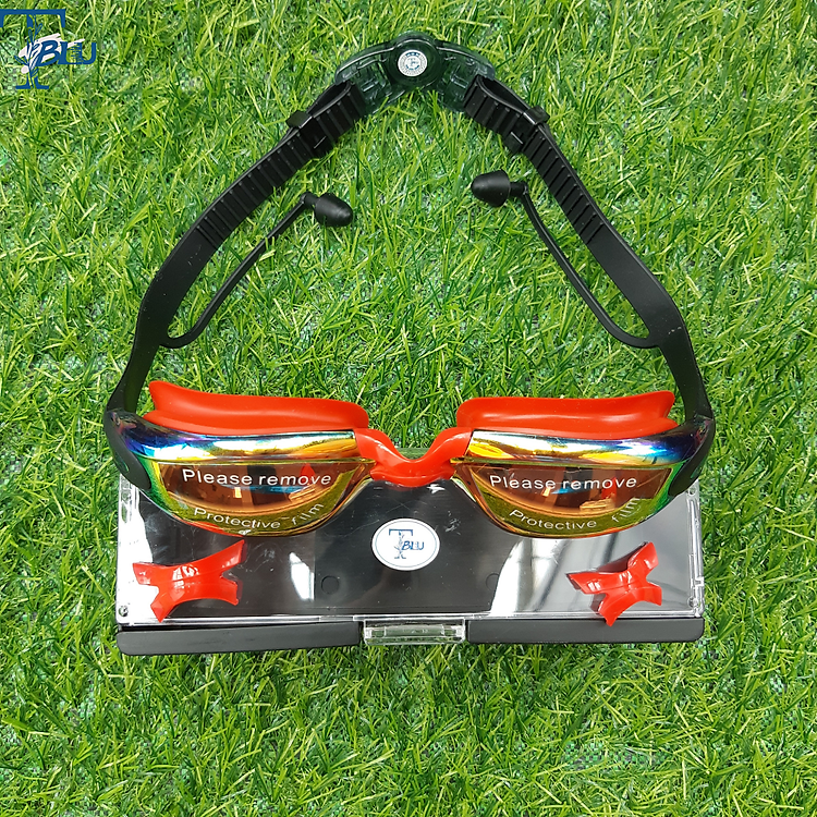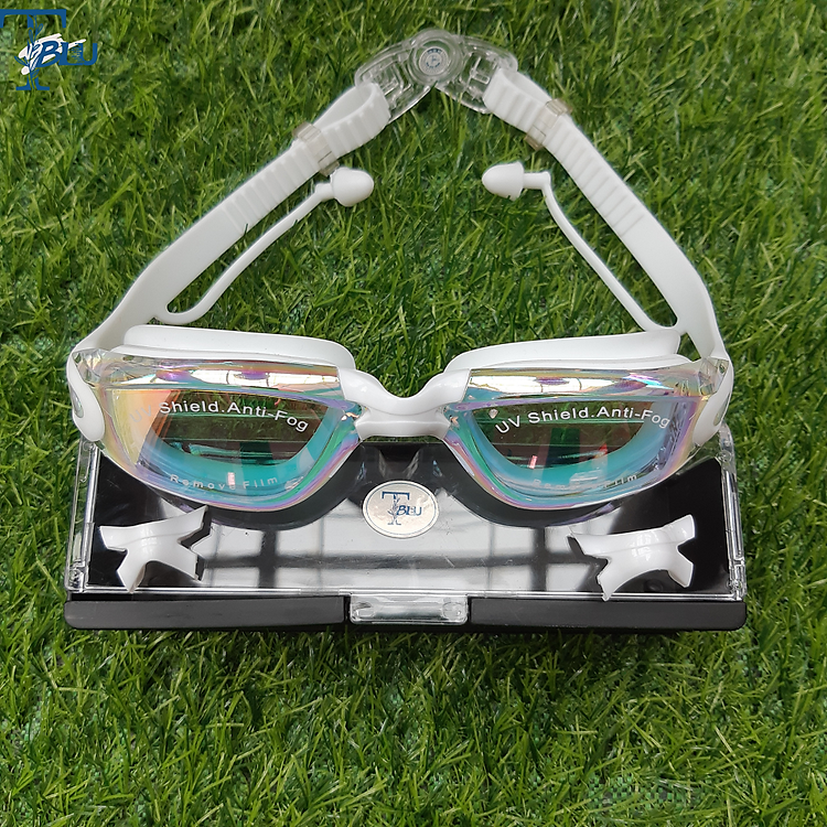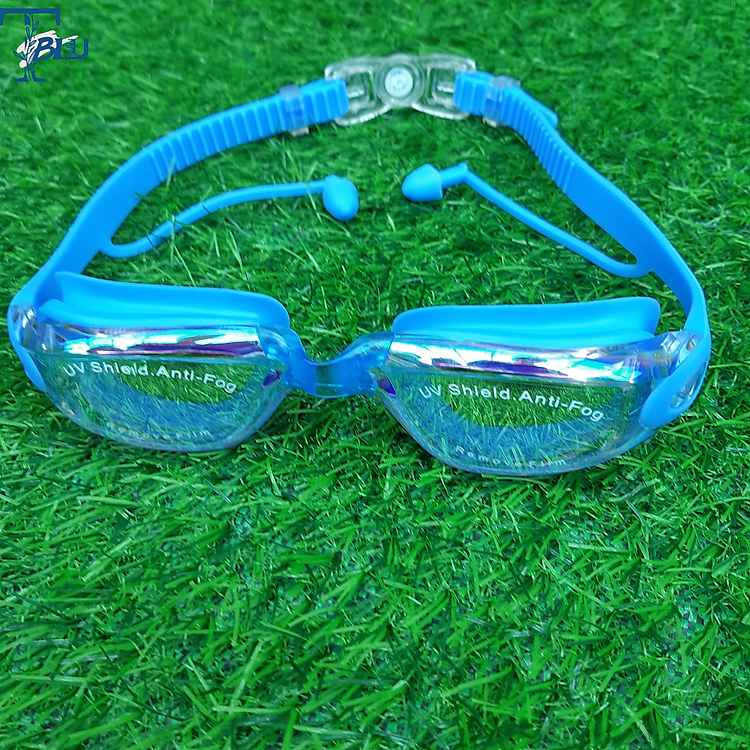 Kính bơi TBLU tráng gương liền nút tai chống tia UV.- Tròng kính được làm từ chất liệu trong suốt, nhẹ và bền- Tròng kính được phủ lớp tráng gương, chống mờ và lớp chống tia UV cực tím giúp bảo vệ mắt…