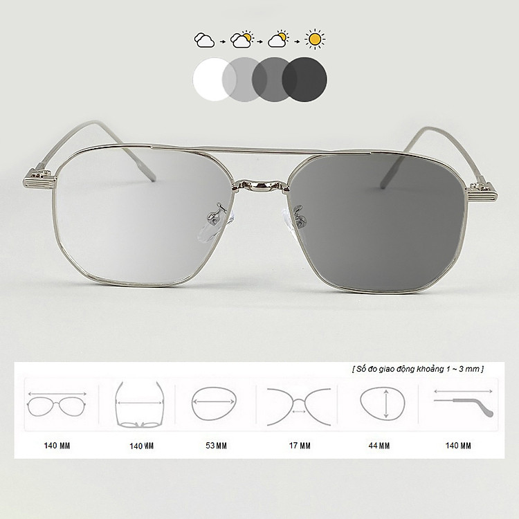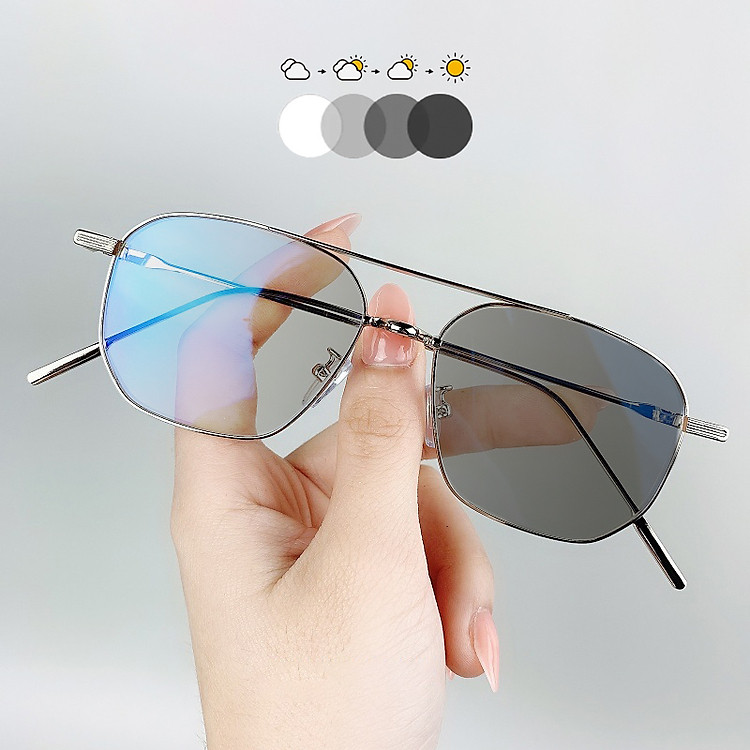 Kính Mắt Đổi Màu Khi Đi Nắng, Mắt Trắng Khi Trong Nhà, Chống Nắng, Bảo Vệ Mắt, Có Đủ Độ Từ 0 Đến Cận, Viễn, Loạn, Mắt Vuông Vừa, Khung Ngang, Gọng Kim Loại – BLUE LIGHT