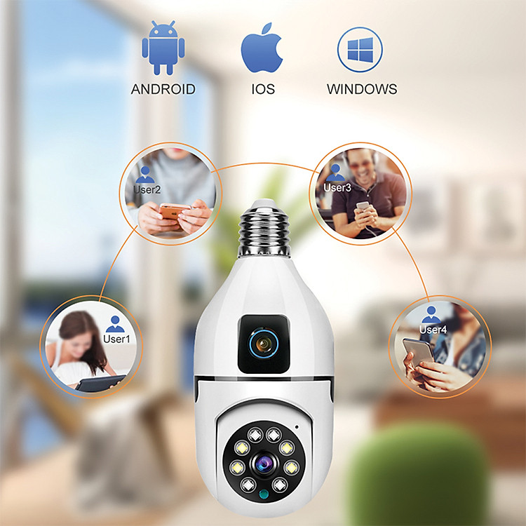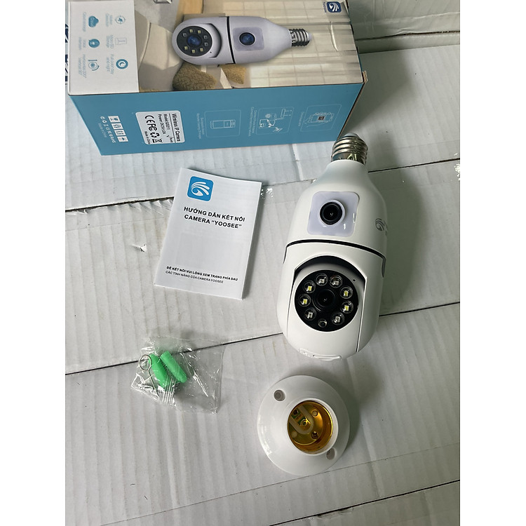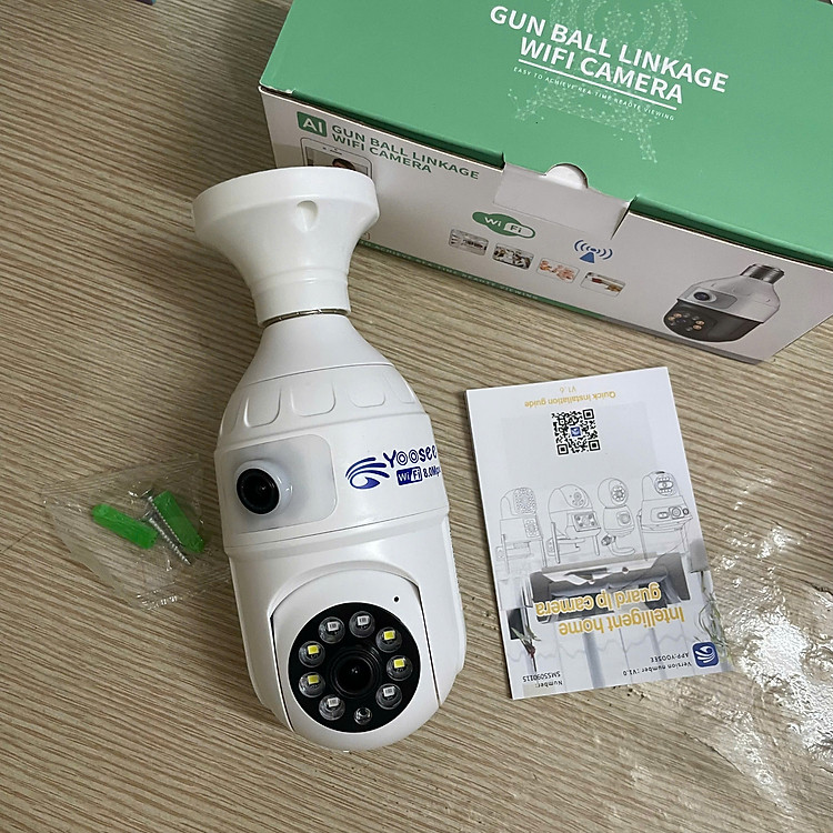 Camera Yoosee hình bóng đèn 2 mắt – Xem 2 khung hình cùng lúc – Xoay 360 độ FullHD 1080P dùng ứng dụng Yoosee (Ban đêm có màu)Tính năng:1.10-15M (IR LED) Ngày và Tầm Nhìn Ban Đêm.2. Hỗ trợ Tự Động …