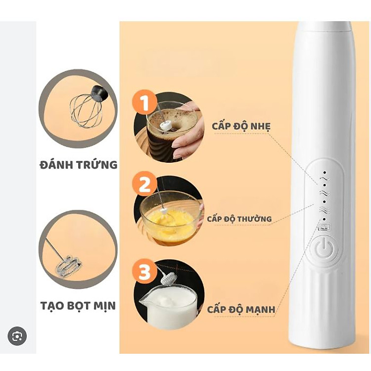 Máy Đánh Trứng, Đánh Sữa Và Tạo Bọt Cafe Cầm Tay Di Động 3 Tốc Độ Sử Dụng Pin Sạc Cao Cấp- Thay vì dùng tay để tạo bọt thủ công khi chế biến một số món ăn, thức uống, hãy để chiếc máy tạo bọt cafe, …