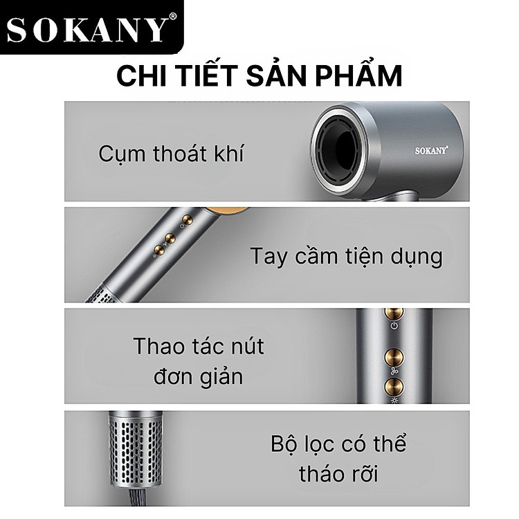 THÔNG SỐ KỸ THUẬT CỦA MÁY SẤY TÓC 2 CHIỀU NÓNG LẠNH SOKANY:- Model: SK-14020- Thương hiệu: SOKANY- Tần số: 50/60HZ- Điện áp: 220V-240V- Công suất:2400W- Độ ồn: 59 db- Kích thước: 28 x 9.5 x 7.5…