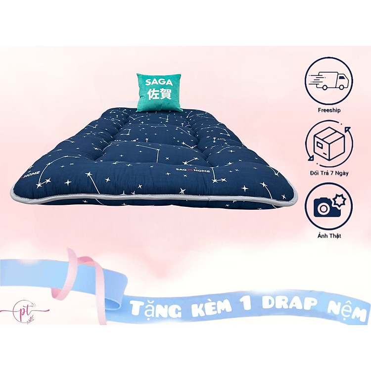 Nệm Trải Sàn, Đệm, Topper Hàng Xuất Nhật 1Mx2M, 1M2X2M, 1M4x2M, 1M6x2M, 1M8X2M Dày 9CM Tặng Kèm Drap Nệm