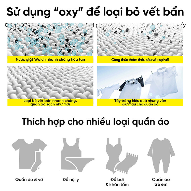 | Hướng dẫn sử dụng | Cách dùng: Cho quần áo và nước giặt vào máy giặt theo liều lượng hướng dẫn. Đối với các vết bẩn cứng đầu, hãy xử lý sơ bộ bằng cách cho một ít nước giặt trực tiếp lên vết bẩn và chà vào vải |