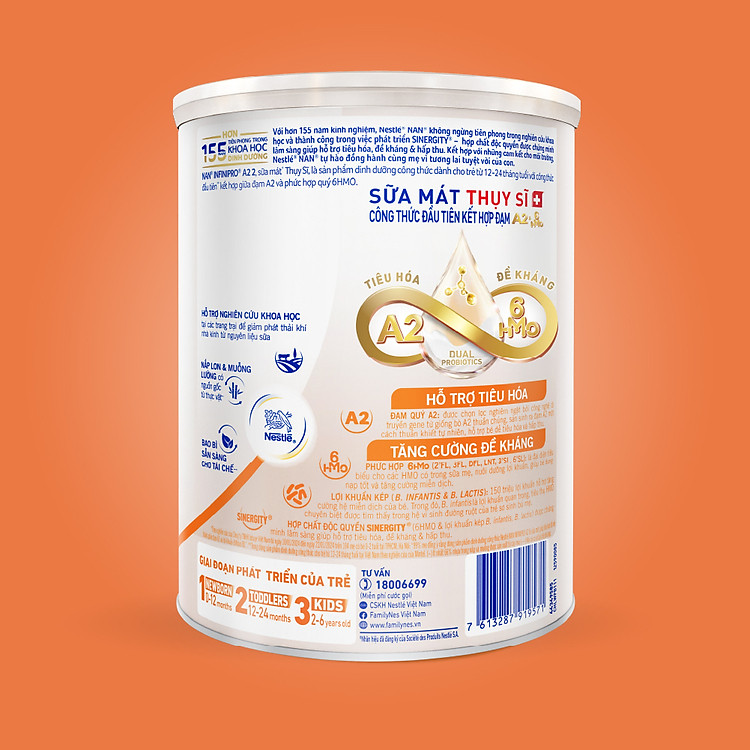 Tên sản phẩm: Sản phẩm dinh dưỡng công thức Nestlé NAN INFINIPRO A2 2 800gKhối lượng tịnh: 800g/lonĐộ tuổi phù hợp:12 – 24 thángThành phần: SỮA A2 tách kem 29% (A2 Skimmed MILK powder), LACTOSE (từ S…
