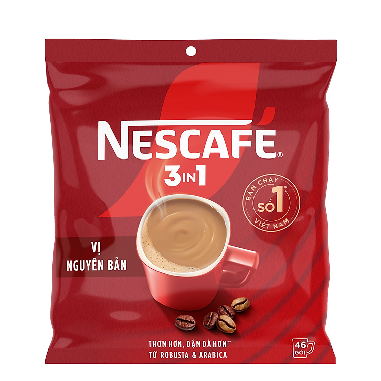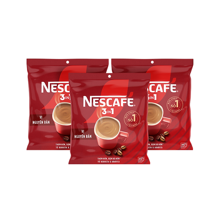 NESCAFÉ 3IN1 VỊ NGUYÊN BẢN – Vị cà phê quốc dân quen thuộc, hài hòa, cân bằng giữa vị sữa và vị cà phê. Nay thêm hương thơm nồng đặc trưng đến từ hạt Arabica, cho ly cà phê- thêm đậm hương, trọn vị, c…