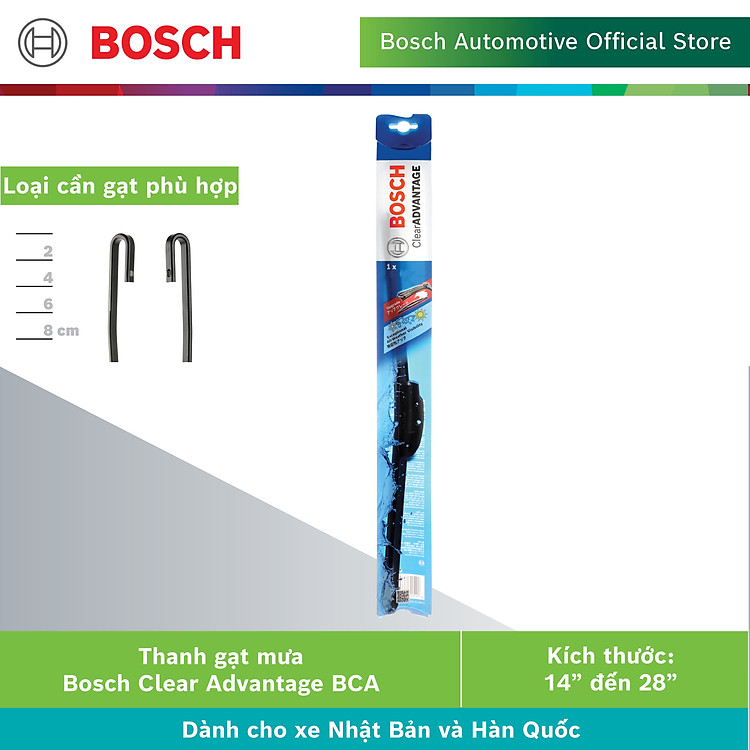 Thanh Gạt mưa Bosch Clear Advantage là loại thân mềm, kèm cánh lướt gió bằng cao su, có phần lưỡi cao su dày.Kích thước đa dạng, phù hợp với đa số loại xe trên thị trường ASEAN. (Trừ những model xe củ…