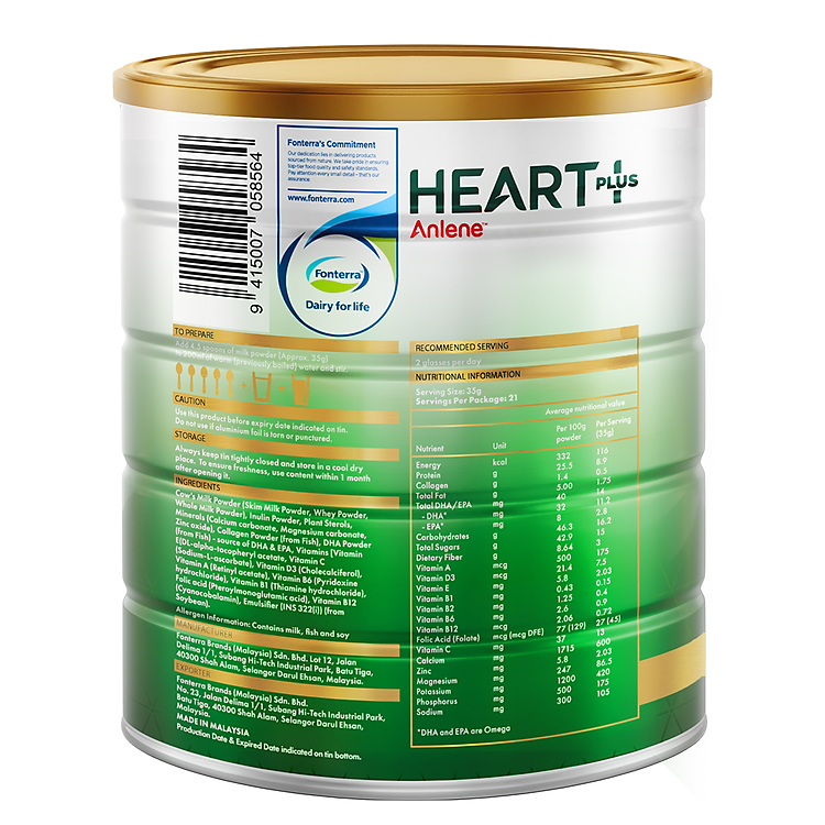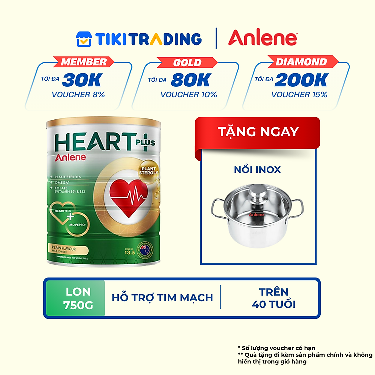 Đặc điểm nổi bật:Anlene Heart Plus mới với công thức tốt cho tim mạch, chứa Plant Sterols giúp giảm 10% cholesterol xấu trong máu trong 3 tuần*, đồng thời chứa Omega 3, Vitamin B12, Kali, Folate và h…