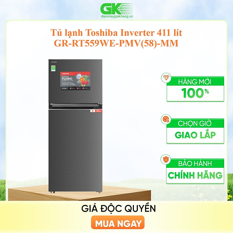 Tủ lạnh Toshiba Inverter 411 lít GR-RT559WE-PMV(58)-MM có luồng khí lạnh đa chiều Multi Air Flow giữ thực phẩm bên trong tươi ngon lâu hơn, an toàn với sức khỏe nhờ trang bị công nghệ PureBio, Origin…