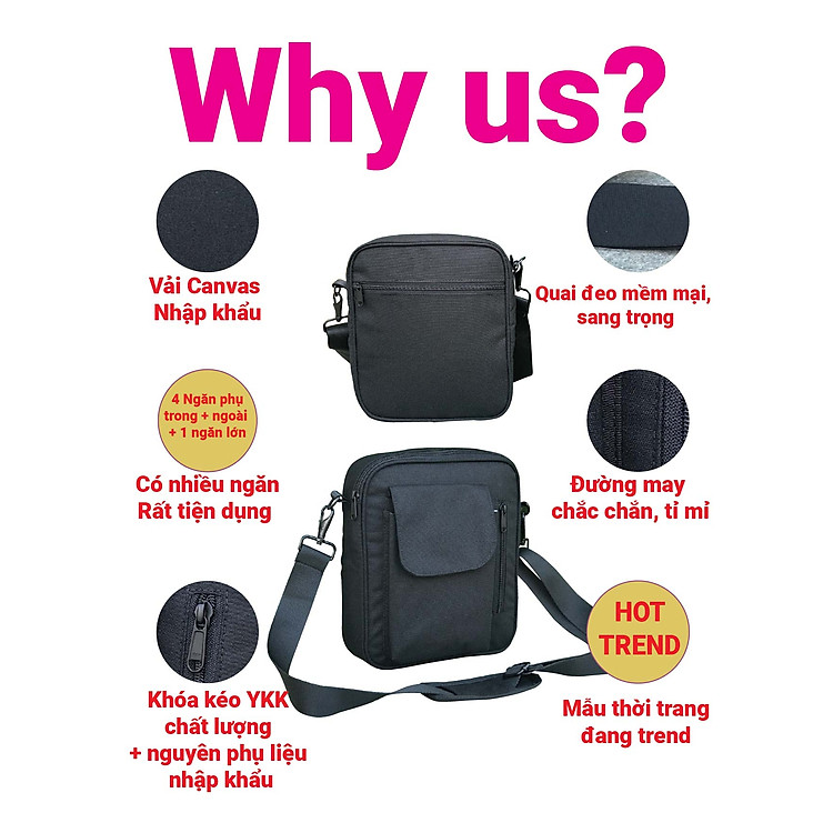 Túi Đeo Chéo Nam Thời Trang Vải Bố Canvas Cao Cấp Dạng Hộp Chống Thấm Nước, Du Lịch, Đi Học, Đi ChơiMẫu túi vải đeo chéo thời trang Hàn Quốc dạng hộp dành cho Nam. Được làm từ chất liệu vải bố Canvas…