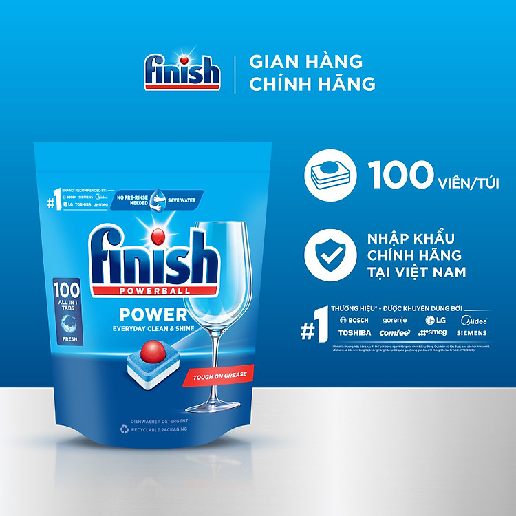 Bao bì sản phẩm thay đổi theo từng đợt nhập hàng.”* Finish -Thương hiệu viên rửa chén bát bán chạy số 1 toàn cầu.* Finish là thương hiệu dẫn đầu thị trường về rửa chén tự động, được khuyên dùng bởi cá…